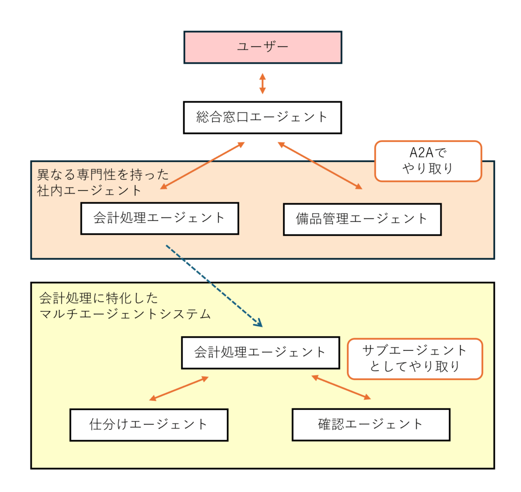 2025年12月25日 【Google Cloud】A2A アプリケーション開発 ベストプラクティスの確立 Agent Development Kit 生成AI(Generative AI) 検索する Popular tags 生成AI(Generative AI) Vertex AI Search Looker Studio BigQuery AlloyDB Google Workspace 事例紹介 Cloud SQL Category Google Cloud Author Google Cloud研究開発チーム SHARE 目次 A2A の概要 A2A のユースケース A2A のメリット・デメリット A2A を用いたアプリケーション構成 A2A のベストプラクティスとワーストプラクティス まとめ Content Google より発表された Agent2Agent (A2A) は、自律した AI エージェント同士を連携して、生産性向上やプロセス自動化を実現する革新的な基礎技術です。 今回は、ビジネスの世界にも広がりを見せている A2A に焦点をあて、「A2A アプリケーション開発 ベストプラクティスの確立」をテーマとし、下記内容で調査・検証を行いました。 A2A とは何? ADK のマルチエージェントとの違いや、メリット、デメリット、ユースケースなど、基礎知識を解説します。 AI エージェントを実装しよう! 実際に環境を作成し、A2A に触れてみます。 Google Cloud への実装やデプロイを通して、A2A が実現できることを検証します。 【Google Cloud】A2A で構成された AI エージェントを Agent Engine にデプロイしてみた A2A のベストプラクティス・ワーストプラクティスとは? ベストプラクティスだけでなく、A2A の恩恵を損ねてしまう「やってはいけない使い方」をワーストプラクティスとして整理します。これらを踏まえ、マルチエージェント案件への対応準備を行います。 ▼「まずは ADK の知見を深めたい」という方は、こちらの記事をぜひご参照ください。 ADK の組み込みツールを使って Python コードを生成・実行できるエージェントを作ってみた BigQuery と Cloud SQL を横断検索!MCP Toolbox と ADK で作るハイブリッドデータ検索エージェント 【ADK+BigQuery】ADK の BigQuery ツールセットを使用してデータ分析エージェントを構築してみた A2A の概要 A2A とは リモート上のエージェント同士がホストとの会話を通じて連携し、それぞれの“専門的な機能”を組み合わせてタスクを進める仕組みのことです。 前提として、ADK のベストプラクティスには「エージェントへ専門性を持たせる」という設計思想があります。 ホストはリモートエージェントのメタデータを読み取り、それぞれが持つ専門機能を判断した上で、ユーザの要望に沿うように処理を適切に分担させます。 ※リモートエージェントのメタデータの詳細は、後述する「A2A の構成」へ記載します。 また、各コンポーネントは疎結合な設計となっており、使用したいリモートエージェントの増減は、ホストへのアドレスの追加・削除によって柔軟に行え、エージェントが異なる言語・バージョン・モデル(AI)の種類で作られていても、A2A を通じて組み合わせて利用することができます。 参考資料 ◆公開リソース Google が公開している A2A プロトコルの公式リポジトリ https://github.com/a2aproject/a2a-samples ◆環境作成手順 環境作成の詳細は、こちらのブログ記事を参考にしました。 10分くらいでできるA2Aのはじめ方 ※上記のブログ記事が作成された時期と、本記事を作成した時期(2025年12月)とでフォルダ構成が異なっております。 作業時のフォルダ構成に読み替えて環境作成を行ってください。 A2A のユースケース A2A は異なる専門性を持ったエージェント同士を連携させてタスクを行いたい場合に便利です。 似たような概念として「マルチエージェント」がありますが、こちらは1つの専門的タスクを実施したい場合に向いています。 A2A とマルチエージェントを組み合わせて1つのエージェントシステムを構築します。 例: ユーザが「総合窓口エージェント」へ問い合わせを行うと、独立したエージェントである「会計処理エージェント」「備品管理エージェント」に適切に連携し、タスクを実施します。(A2A による連携) 「会計処理エージェント」は会計処理用のサブエージェントである「仕分けエージェント」「確認エージェント」と連携し、「会計処理タスク」を実施します。(マルチエージェントによる連携) A2A のメリット・デメリット ◆メリット エージェントの拡張性 A2A は拡張性に優れています。A2A プロトコルでエージェント間の連携を行うことで、標準化されたやり取りにより異なる言語や異なるフレームワークで構築されたエージェント間の連携をスムーズに行うことが出来ます。また各エージェントのエンドポイントで自由に追加、削除が出来るため、既存のエージェントシステムに別の専門性を持ったエージェントを簡単に追加することも出来ます。 将来性 A2A は標準化されたエージェント間連携のためのプロトコルであるため、A2A に則ったエージェントを開発することで、今後の AI 環境への対応にもなります。開発したエージェントを自社の別システムや他社向けに展開したり、公開されているエージェントとの連携も可能です。また Gemini Enterprise などサービス上で Agent Engine にデプロ